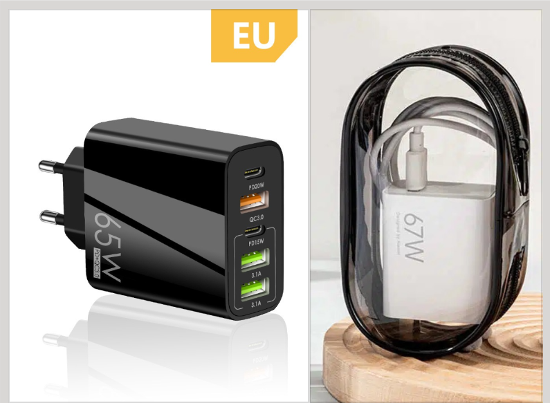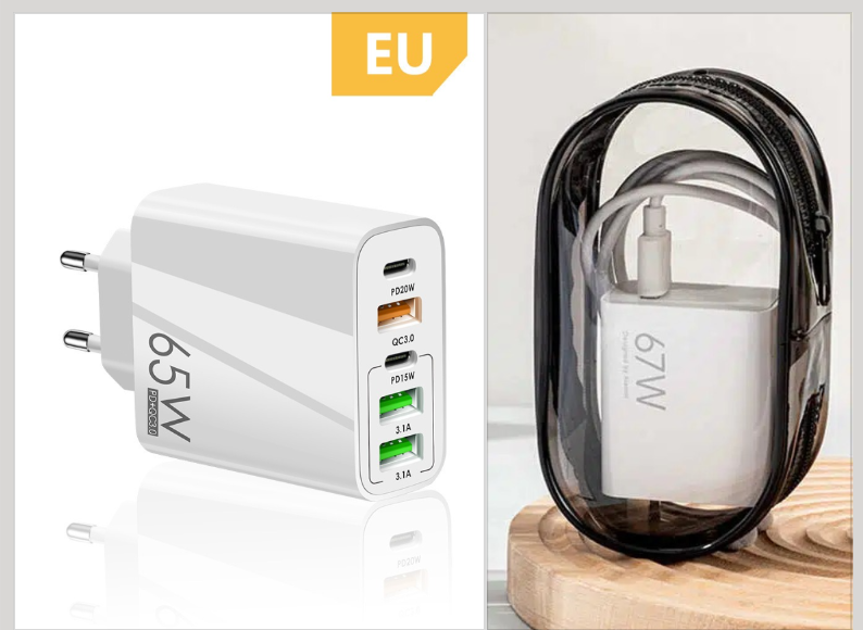 CHARGE ULTRA-RAPIDE : Avec une puissance de sortie impressionnante de 65 W, ce chargeur offre une vitesse de charge fulgurante, ce qui le rend idéal pour les smartphones, les ordinateurs portables, les tablettes et bien plus encore.