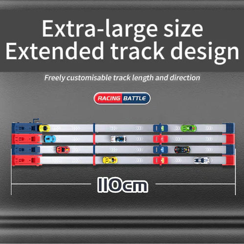 PISTE EXTENSIBLE DE 110 CM - La conception extra-longue de la piste offre une piste étendue pour des actions à haute vitesse. Cela crée des courses plus suspensives et permet aux voitures d'atteindre leur élan maximum pour des finales palpitantes à chaque fois.