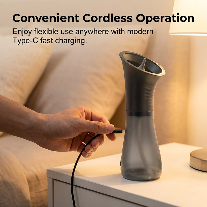 RECHARGEABLE ET PORTABLE - Une batterie intégrée de 2000 mAh offre une autonomie longue durée, tandis que le port universel Type-C simplifie la recharge. Son design compact est parfait pour maintenir l'hygiène de vos oreilles à la maison comme en voyage.