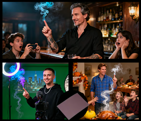 - Étape 3 — Émerveillez : Frottez doucement le bout de vos doigts et regardez une fumée mystérieuse s'élever, laissant tout le monde complètement déconcerté.
