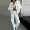 Le paquet comprend : 1* Ensemble deux pièces à coupe décontractée pour femmes - veste à fermeture éclair et pantalon à jambe large