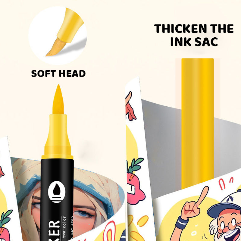 MÉLANGE DYNAMIQUE DE DOUBLE COULEUR POUR DES EFFETS UNIQUES - Découvrez la magie du mélange de deux couleurs avec le kit innovant de marqueurs aquarelle double couleur à double pointe. Chaque marqueur combine deux couleurs complémentaires en une, vous permettant d'obtenir facilement des effets de dégradé époustouflants et des transitions de couleurs fluides.