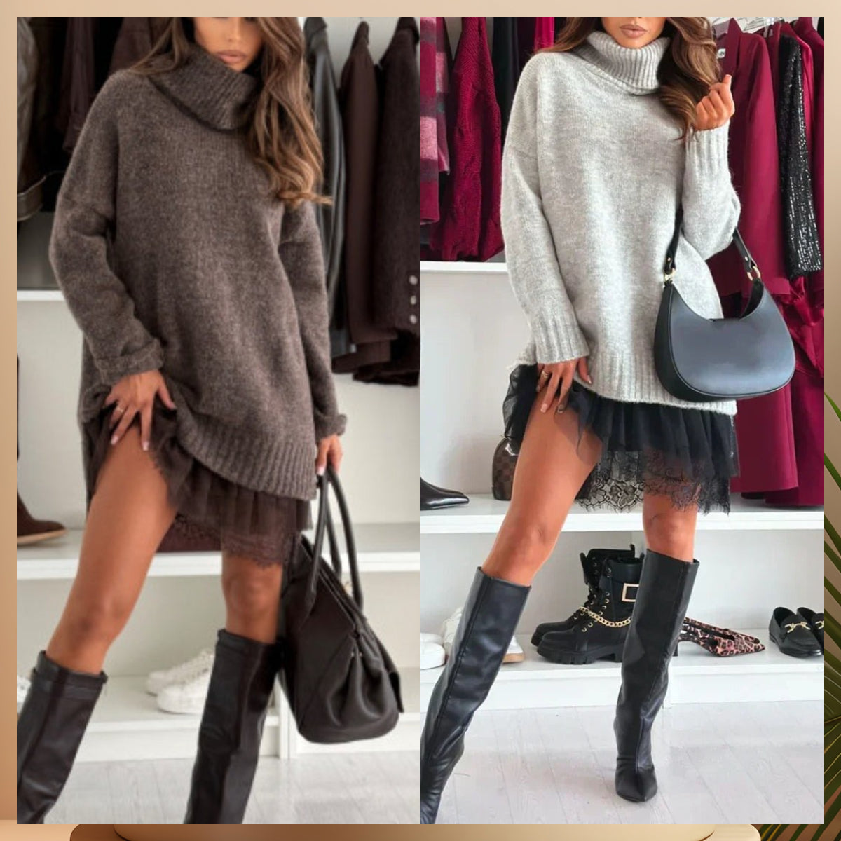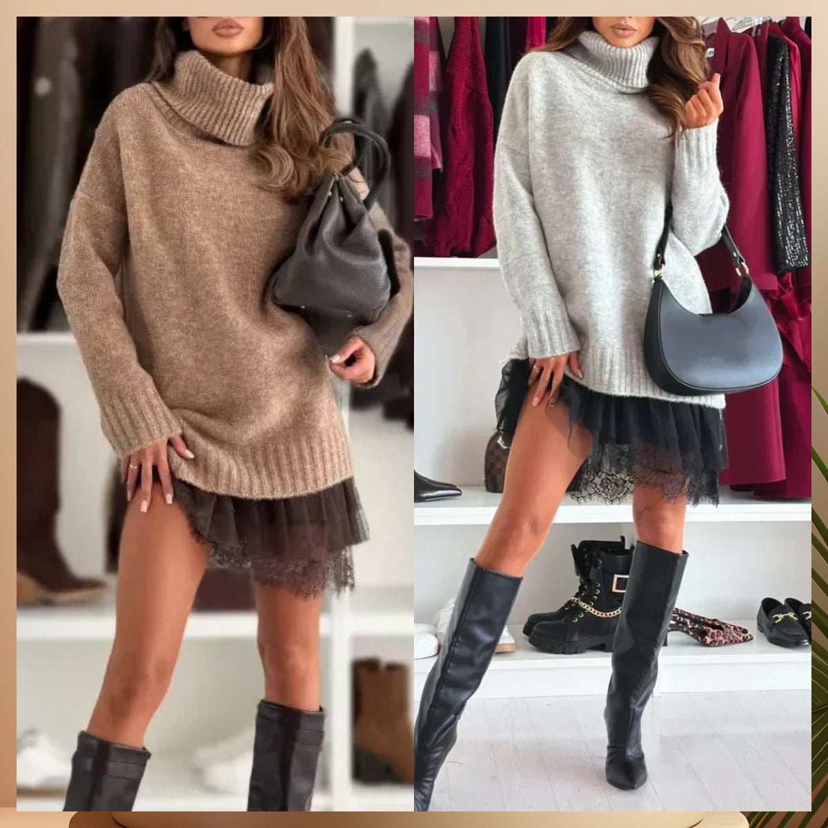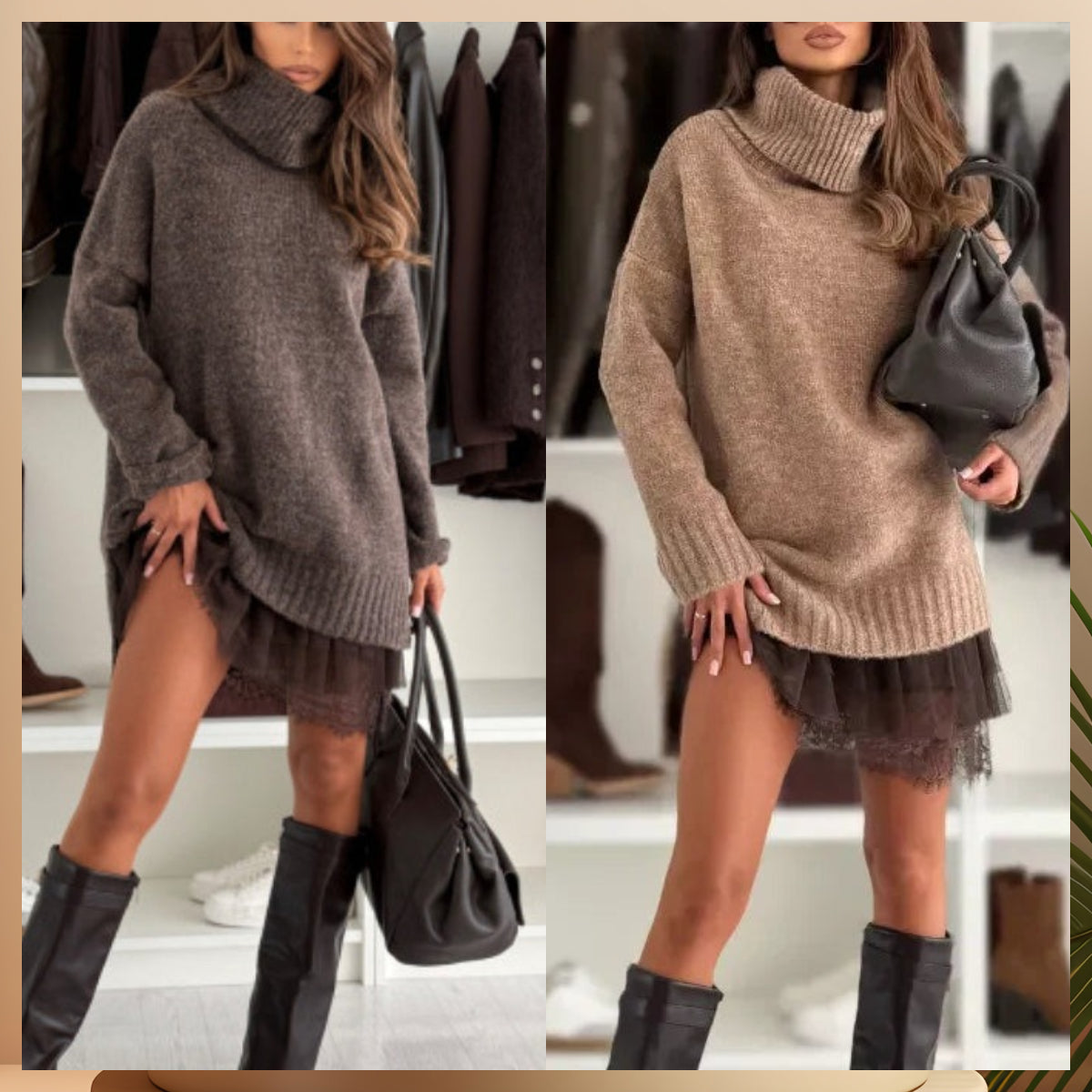 Découvrez l'élégance et le confort réunis dans notre ensemble mini-robe et pull à col roulé pour femme. ✨
