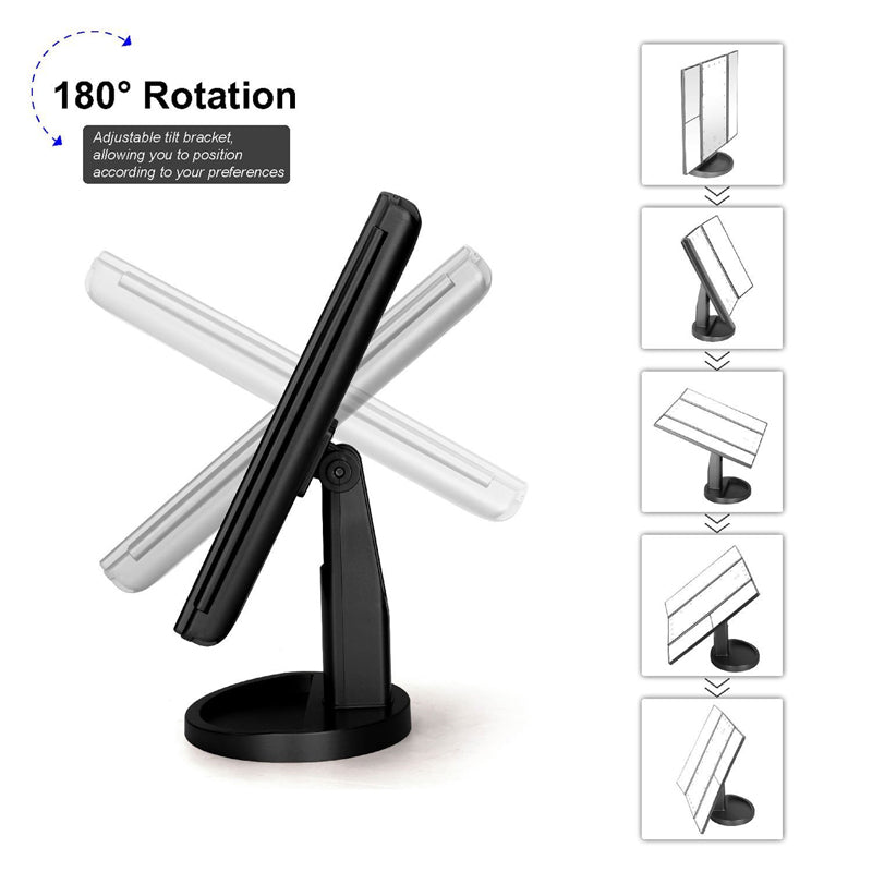 ÉCLAIRAGE LED RÉGLABLE -Illuminez votre visage uniformément grâce à 22 LED lumineuses, dont la luminosité est réglable d'un simple geste. Obtenez un éclairage parfait pour l'application du maquillage, même dans des environnements peu éclairés.