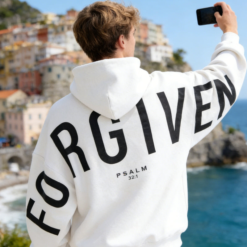 DESIGN INSPIRÉ PAR LA FOI - Exprimez fièrement vos convictions avec des messages percutants sérigraphiés tels que « Forgiven » et « Yahweh ». Ce design est une source d'inspiration quotidienne et un témoignage de votre foi, invitant à des conversations enrichissantes où que vous soyez.