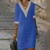 Das Paket beinhaltet: 1 * Kleid aus Baumwollleinen mit V-Ausschnitt und Spitzenbesatz