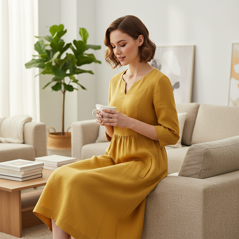 FERMETURE ÉCLAIR LATÉRALE PRATIQUE – Assure une coupe nette et sans couture, facile à enfiler et à enlever. Ce détail discret préserve les lignes épurées de la robe tout en offrant une fonctionnalité pratique pour un port quotidien sans effort.