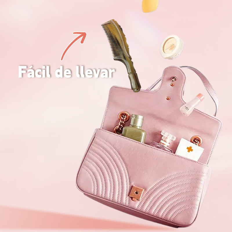 MATERIAL DE CUERNO NATURAL PREMIUM - Nuestro peine de cuerno natural hecho a mano está fabricado con cuerno, conocido por su resistencia y flexibilidad. A diferencia de los peines de plástico o metal, los peines de cuerno son naturalmente suaves y menos propensos a generar estática, reduciendo el frizz y la rotura.