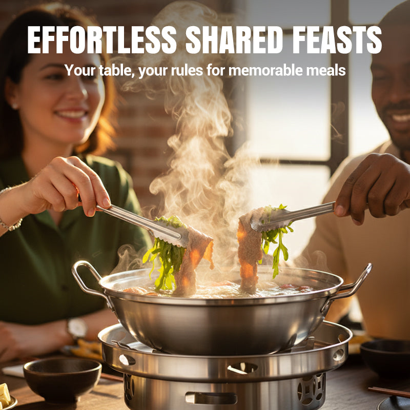 CONSTRUCTION DURABLE - Fabriqué à partir de matériaux de haute qualité, cet ensemble réchaud et casserole résiste à la rouille, à la corrosion et aux hautes températures. Conçu pour durer, il vous garantit d'innombrables repas savoureux et un nettoyage facile après utilisation.